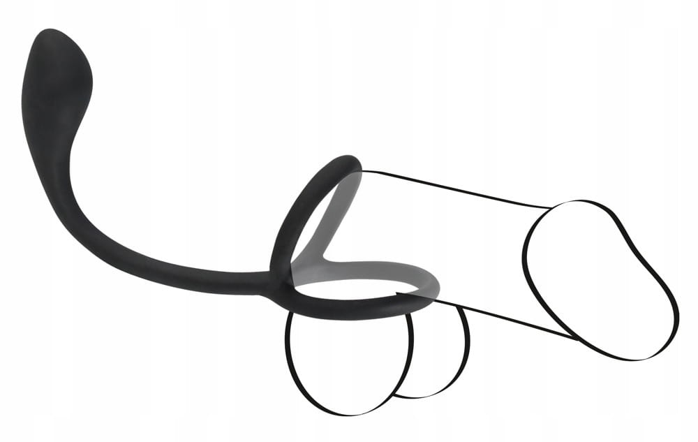 Sam korek analny ma pogrubioną głowę do ukierunkowanej stymulacji prostaty, czyli punktu P. Łączy się on płynnie przez silikonowy mostek z pierścieniem erekcyjnym na penisa i jądra, a także będzie służył do jednoczesnej stymulacji krocza.