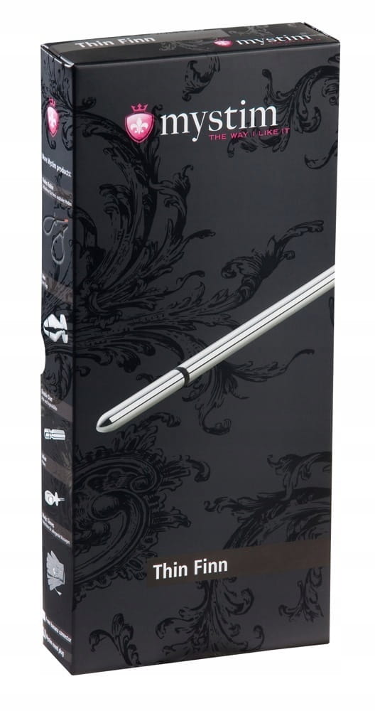 Mystim Thin Finn to gładka i długa sonda cewkowa wykonana ze starannie wypolerowanego aluminium klasy medycznej, nadająca się do szczególnej stymulacji prącia. Elegancki wygląd i lekko zaokrąglona końcówka ułatwia wkładanie do cewki moczowej.