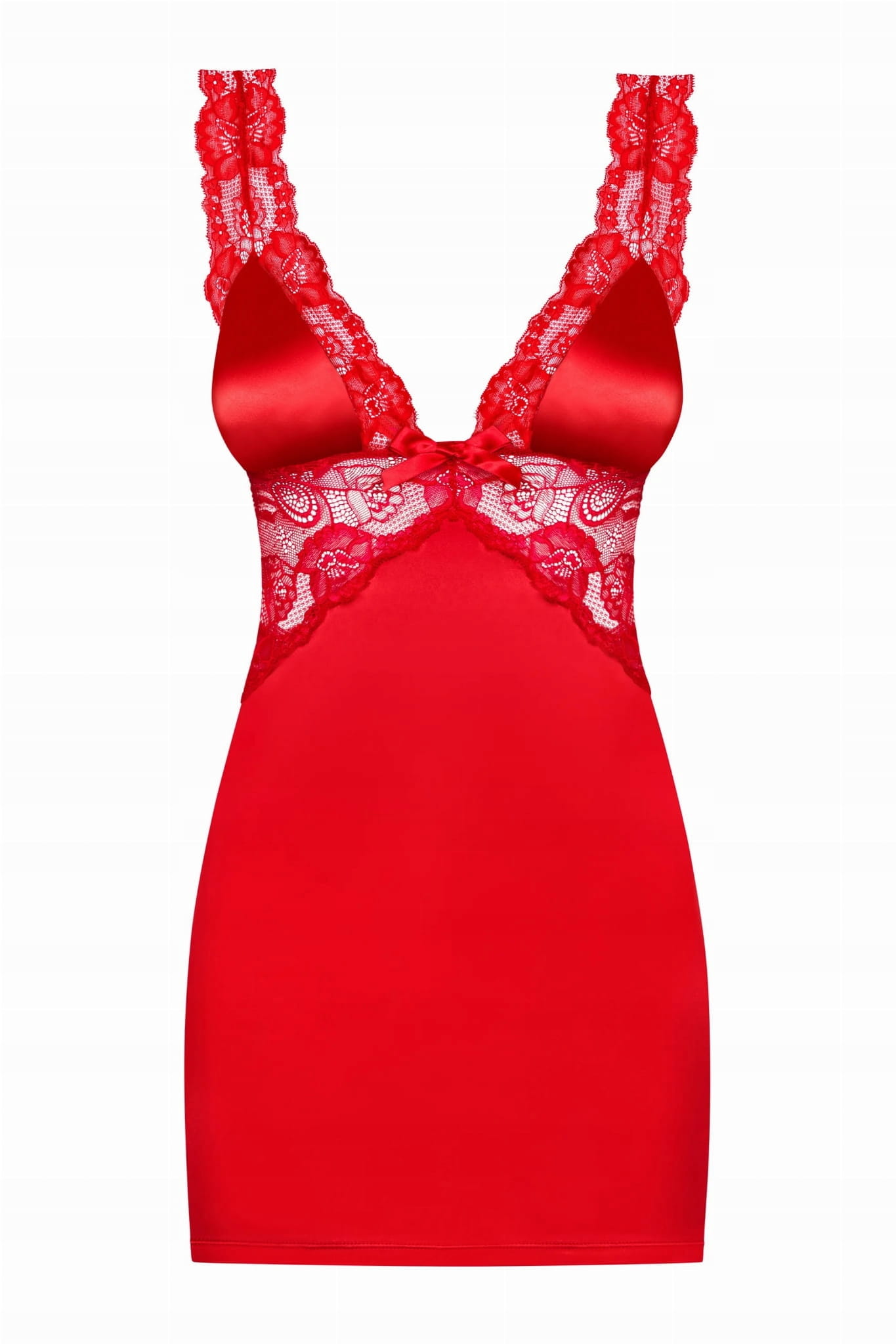 Niezwykle kobieca czerwona koszulka i stringi - rozpala zmysły. Dzięki tej koszulce słowo "zabawa" nabiera nowego znaczenia ! Czerwona koszulka, która doskonale przylega do Twojego ciała. Wykonano ją w całości z połyskującej i aksamitnie miękkiej satyny. Ma regulowane ramiączka i miękkie miseczki, oraz przezroczyste, koronkowe wstawki ozdabiające dekolt i talię. Między miseczkami znajdziemy także uroczy szczegół - kokardkę. Kusi, prawda ? To model idealny dla figlarnych romantyczek ! W komplecie z koszulką gładkie stringi. Bielizna znajduje się w ozdobnym pudełeczku, dzięki czemu można przeznaczyć ją na prezent. Seksowne szczegóły :