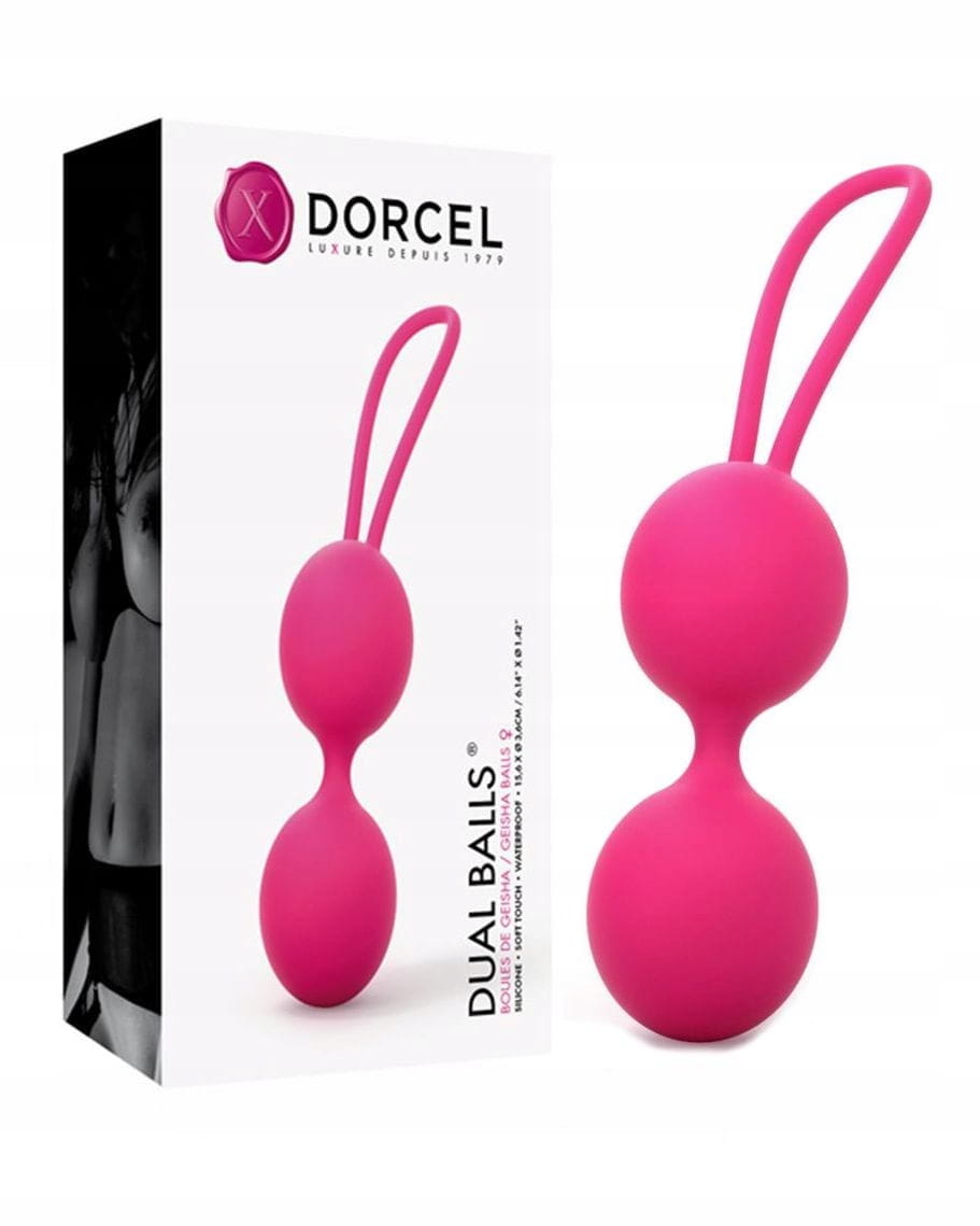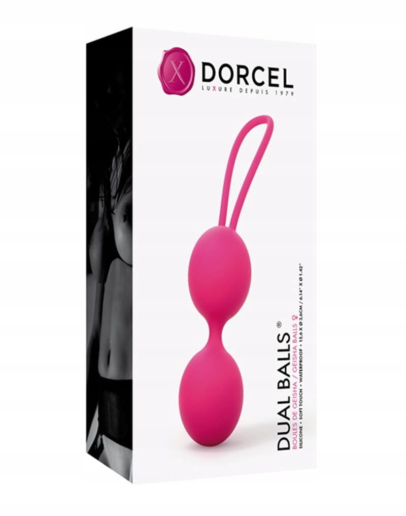 Połącz przyjemne z pożytecznym i zwiększ odczuwaną przyjemność seksualną podczas Waszych erotycznych spotkań wzmacniając mięśnie dna miednicy za pomocą ćwiczeń kulkami gejszy DUAL BALLS®. Systematyczne ćwiczenia idealnie wzmacniają mięśnie dna miednicy, a ultra miękka powłoka kulek wykonana z silikonu medycznego najwyższej jakości i owalny kształt, ułatwiają wprowadzanie do pochwy. Podwójna silikonowa pętelka powrotna pozwala wyjąć je tak łatwo, jak je włożyłaś. Wzmacniając mięśnie Kegla, będziesz mieć lepszą wiedzę o swoim ciele i poczujesz się pewniej ze swoim Partnerem podczas intymnych relacji. Można nawet zaryzykować tezę, że kulki gejszy są niezbędnym towarzyszem na drodze Twojego rozwoju seksualnego ! Małe metalowe kulki ukryte wewnątrz silikonowej osłony zapewniają stymulujące wibracje podczas każdego ruchu. Nie trać ani minuty i używaj ich bezpośrednio po wyjęciu z opakowania. Aby zapewnić przyjemniejsze wkładanie kulek, zalecamy użycie lubrykantu na bazie wody. Po każdym użyciu umyjesz je letnią wodą i delikatnym mydłem lub specjalnym środkiem do czyszczenia zabawek erotycznych. Aby osiągnąć efekt treningowy ważne jest, aby prawidłowo umieścić kulki gejszy. Prawidłowo jest wtedy, kiedy nie czujesz ich obecności podczas siedzenia lub leżenia. Przyjmij najwygodniejszą dla siebie pozycję - kulki gejszy wprowadzasz do pochwy jak tampon i popychasz w kierunku szyjki macicy. Kulki gejszy Dual Balls są wodoodporne.