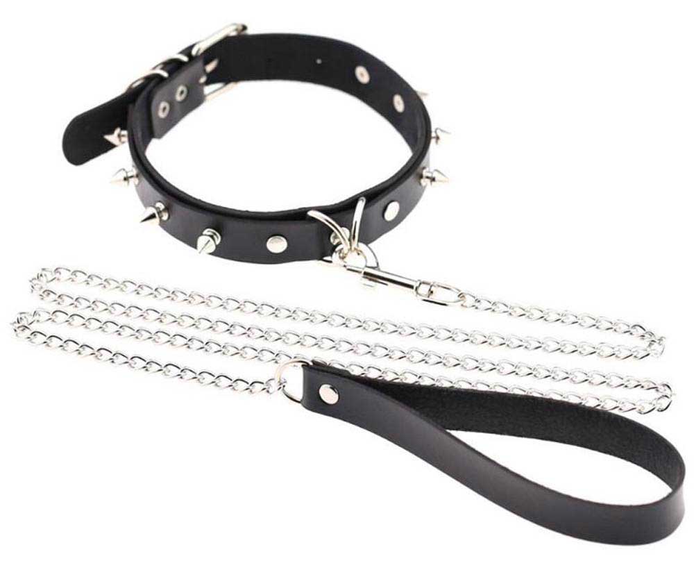 Skórzana Obroża Ze Smyczą Choker Spikes And Leash