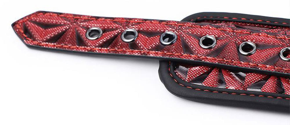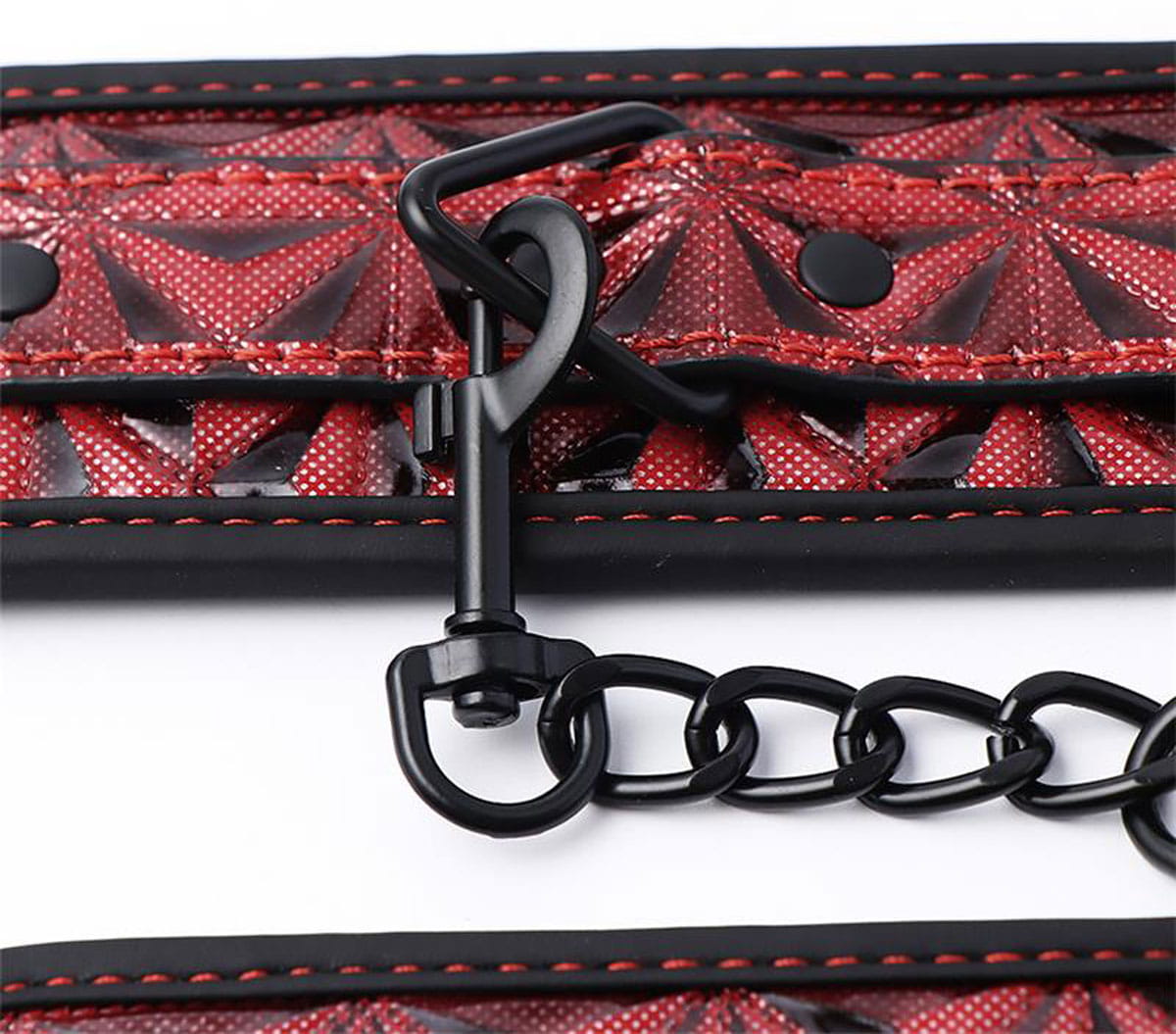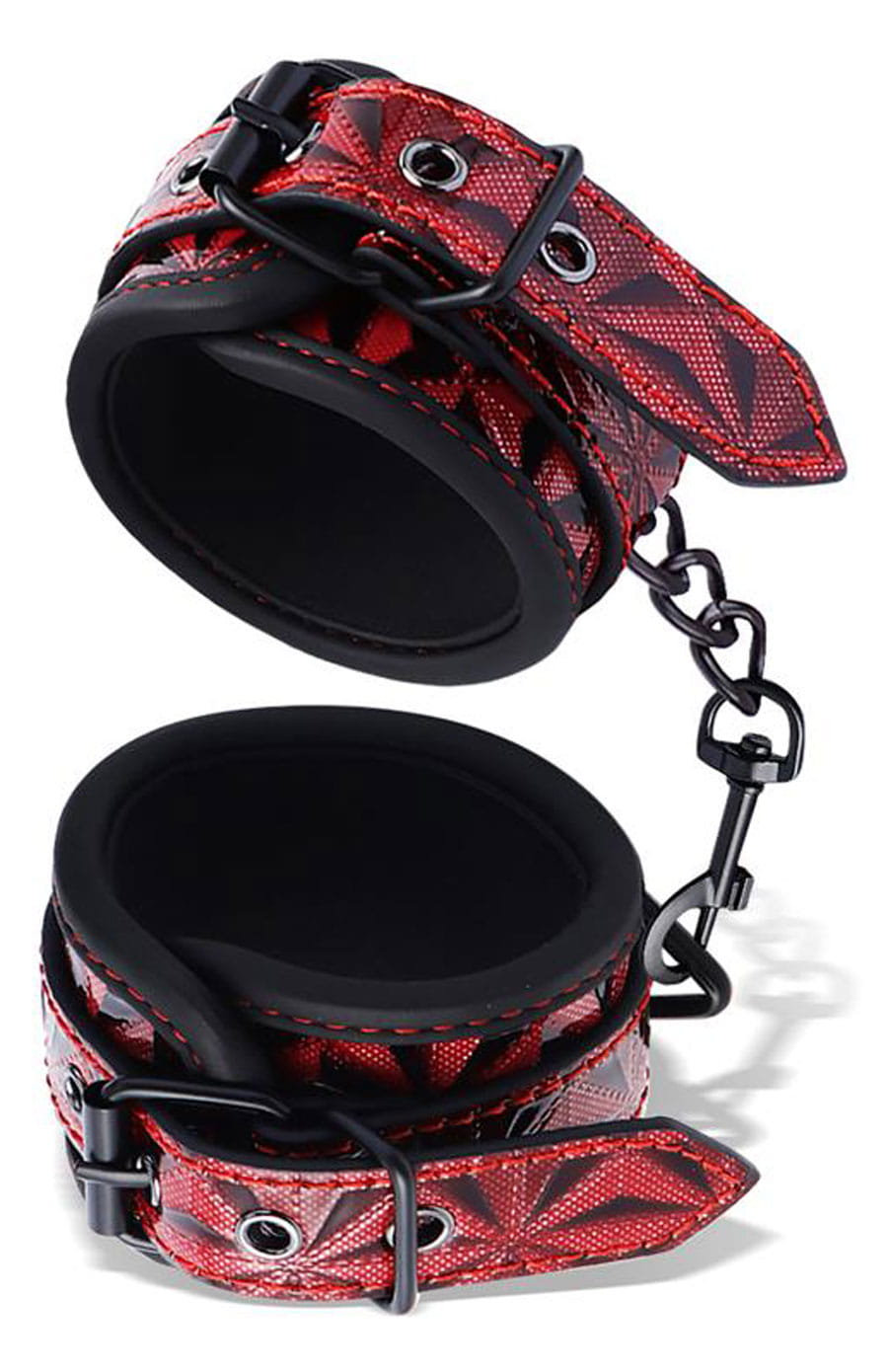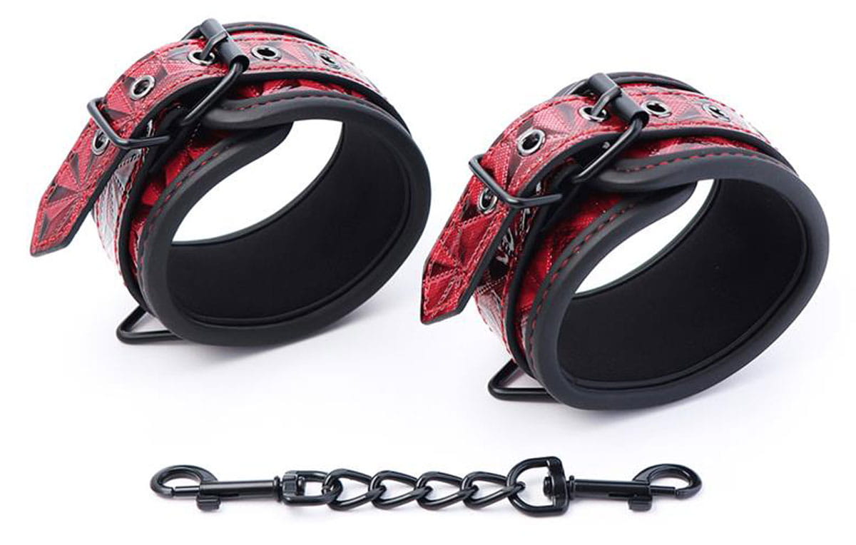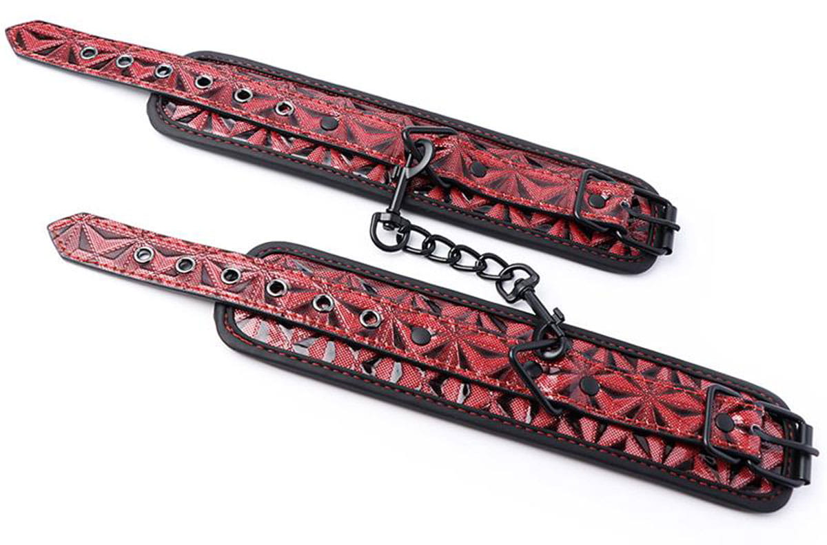 Rozbrojenie partnera i pokazanie mu, kto dziś jest odpowiedzialny za scenariusz, można zrobić jednym prostym urządzeniem - kajdankami. Delikatny materiał otula kostki w przyjemnej niewoli, podkreślając wyrafinowanie i pikanterię sytuacji oraz daje zupełnie nowe doznania związane z niemożnością pełnego poruszania się. Jeśli nie jesteś dzisiaj ofiarą, będziesz mógł cieszyć się każdą częścią ciała swojego więźnia i bawić się nią. Kajdanki są regulowane, aby ściśle przylegały do kostek Zapinane na sprzączki i połączone ze sobą łańcuszkiem. Kolor: czerwono-czarny Materiał: Vegan Leather - sztuczna skóra,metal