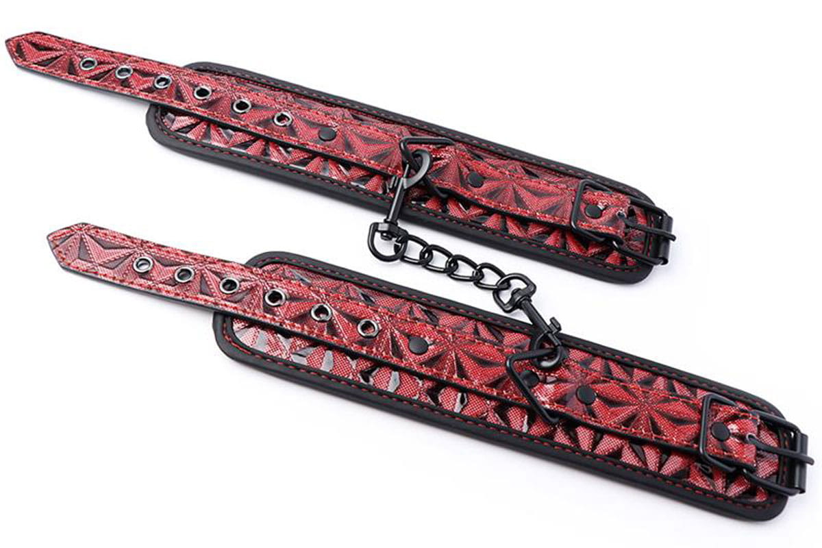 Rozbrojenie partnera i pokazanie mu, kto dziś jest odpowiedzialny za scenariusz, można zrobić jednym prostym urządzeniem - kajdankami. Delikatny materiał otula nadgarstki w przyjemnej niewoli, podkreślając wyrafinowanie i pikanterię sytuacji oraz daje zupełnie nowe doznania związane z niemożnością pełnego poruszania się. Jeśli nie jesteś dzisiaj ofiarą, będziesz mógł cieszyć się każdą częścią ciała swojego więźnia i bawić się nią. Kajdanki są regulowane, aby ściśle przylegały do rąk. Zapinane na sprzączki i połączone ze sobą łańcuszkiem. Kolor: czerwono-czarny Materiał: Vegan Leather - sztuczna skóra,metal