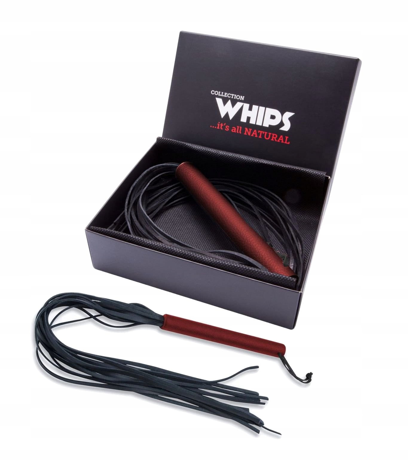 Naturalna skóra świetnie wpisuje się w klimat BDSM, gdzie jest wręcz symbolem tej relacji seksualnej. Produkt cechuje staranność wykonania, najlepszej jakości materiały, wytrzymałość, nienachalna estetyka i wysoki komfort użytkowania. Wspaniały pomysł na niegrzeczny prezent. Opakowanie : eleganckie czarne pudełko. Kolekcja WHIPS została stworzona przez polskich rzemieślników z ponad 30 letnim doświadczeniem. Dzięki ręcznej pracy i dbałości o każdy detal, gwarantujemy najwyższą jakość oferowanych produktów. Do produkcji używamy naturalnych skór bydlęcych o najwyższej jakości, pochodzących wyłącznie z polskich garbarni. Końcowy produkt jest bardzo przyjemny w dotyku, nie posiada ostrych krawędzi i nie powoduje podrażnień oraz odznacza się ekscytującym zapachem prawdziwej, naturalnej skóry. Kolekcja WHIPS została stworzona z myślą o klientach, ceniących sobie najwyższą jakość produktów.