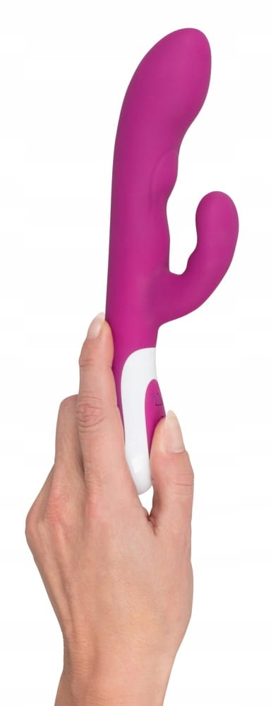 Wspaniały wibrator firmy Javida z ramieniem stymulującym łechtaczkę - ma dwa silniki umożliwiające równoczesną stymulację pochwy i łechtaczki.