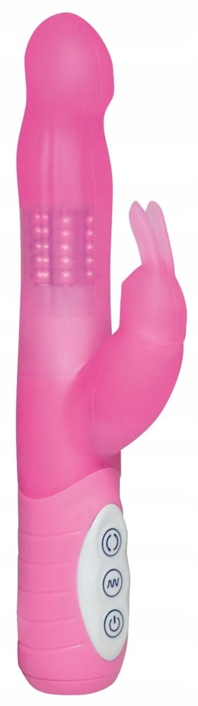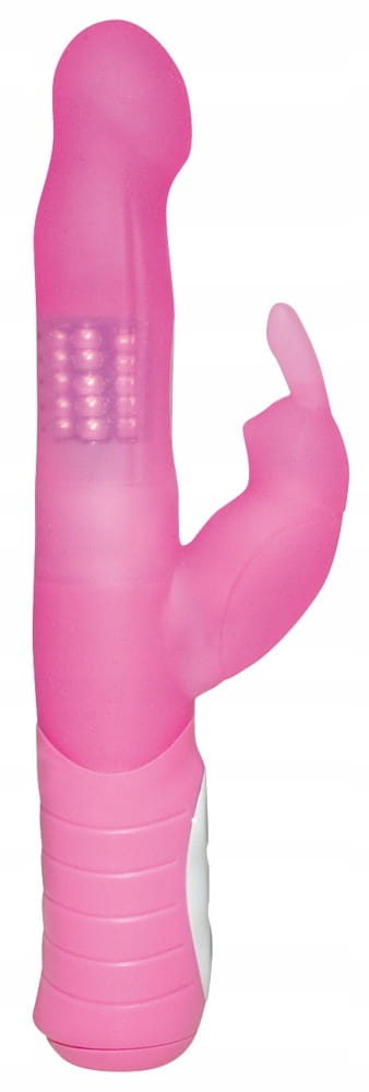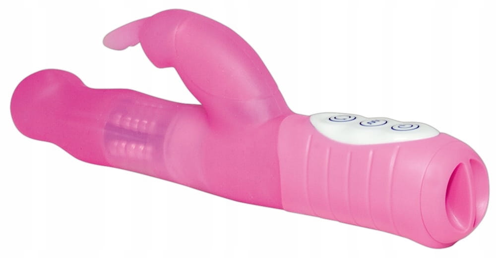 Różowy perełkowy wibrator ze stymulatorem łechtaczki w kształcie króliczka.