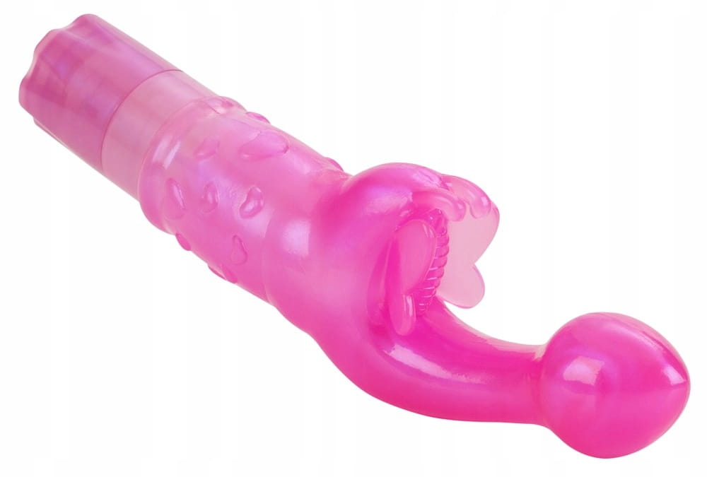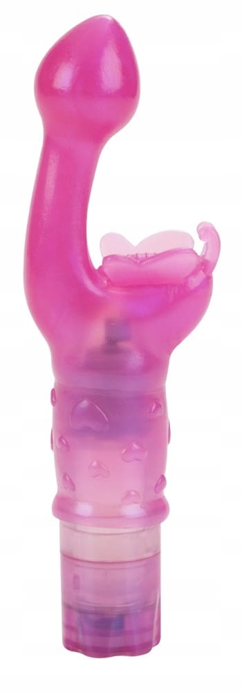 Intrygujący różowy wibrator z doskonale wyprofilowaną, lekko zakrzywioną główką dla lepszej penetracji, która mocno stymuluje punkt G, oraz ze stymulatorem łechtaczki w kształcie motylka!