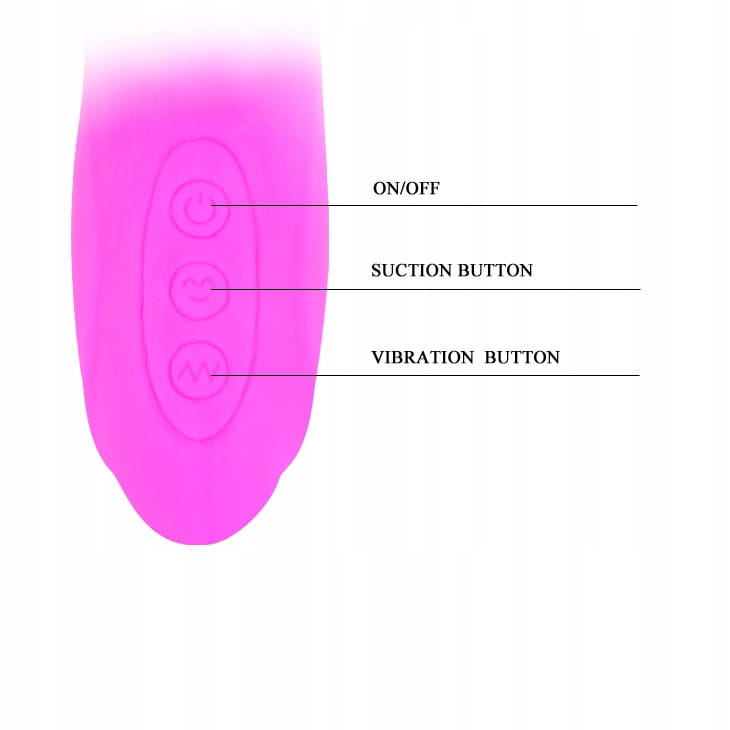 Sterowanie wibratorem jest bardzo proste. Na panelu sterowania są 3 pionowo ułożone przyciski – górny włącza i wyłącza urządzenie, środkowy reguluje tryb ssania, a dolny tryb wibracji. Co bardzo ważne - każda z tych dwóch funkcji może działać samodzielnie !