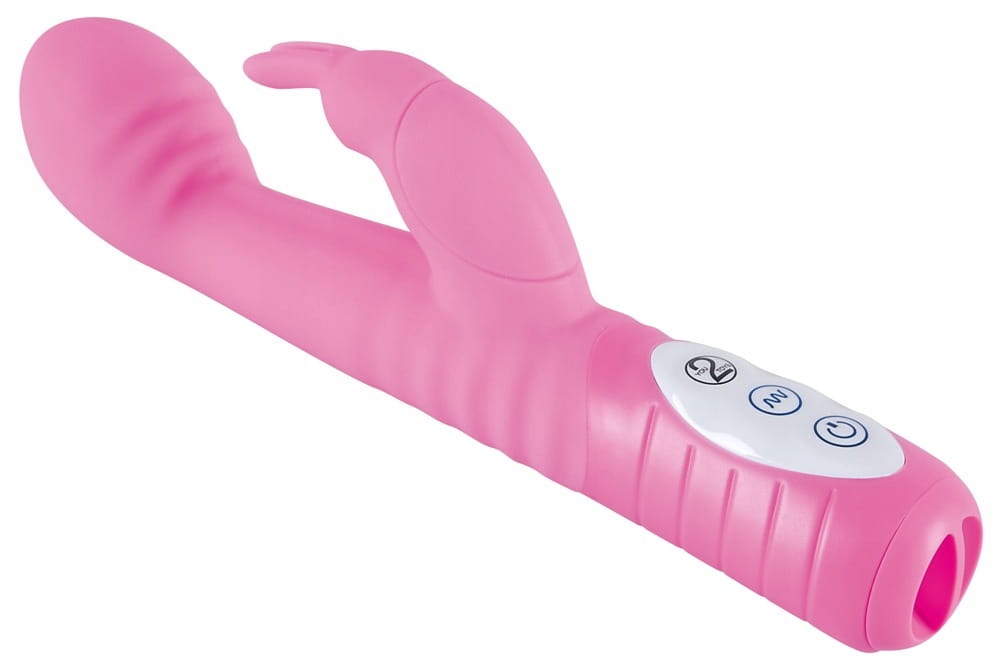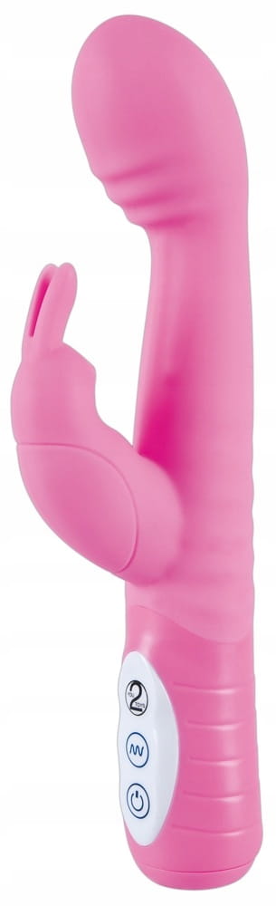 Bardzo mocny, elastyczny wibrator ze stymulatorem łechtaczki w kolorze różowym.