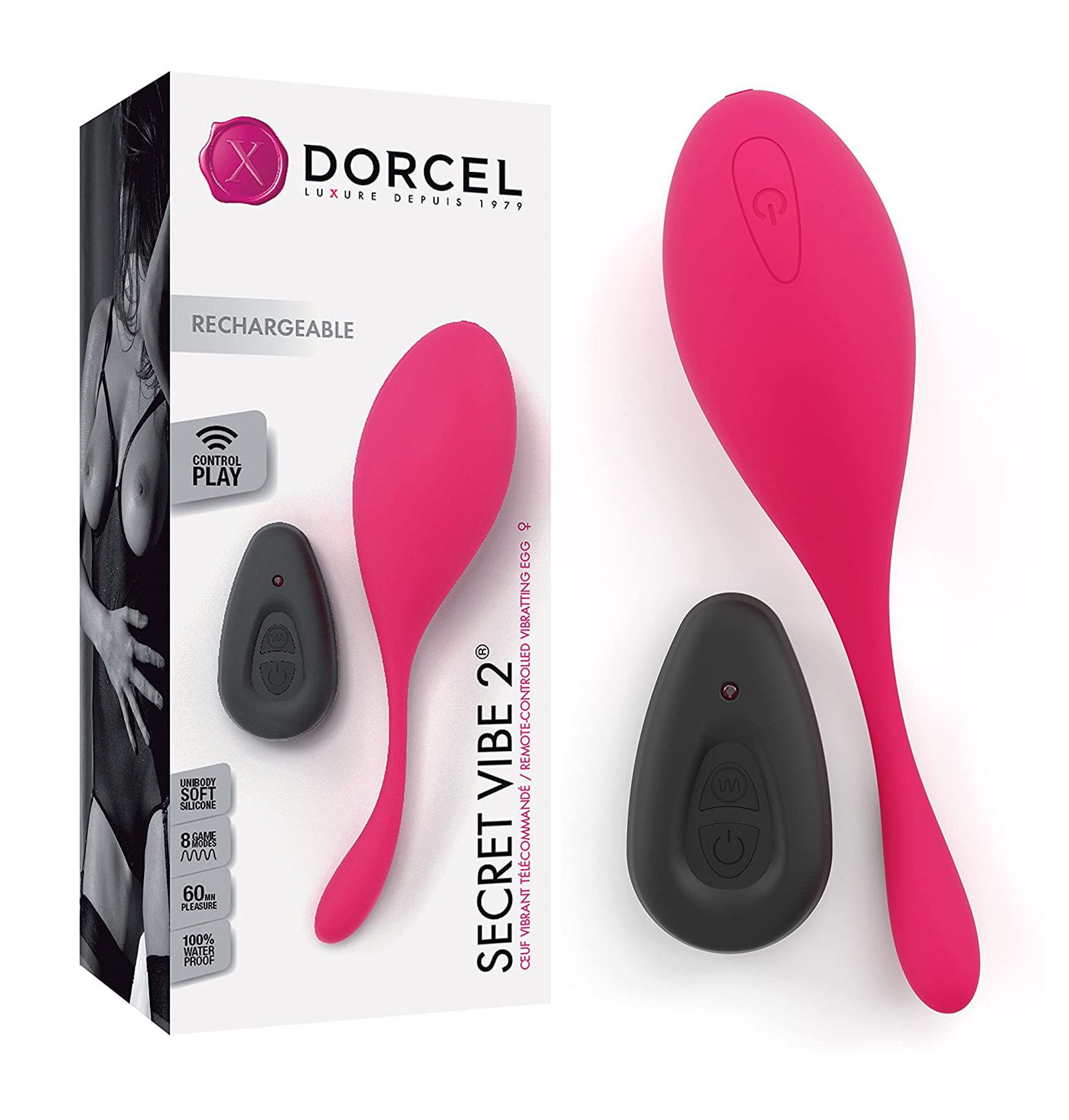Zaskocz swojego Partnera jeszcze raz, sprawiając, że rozkoszne wibracje rozpalą jego zmysły i ochotę na jeszcze więcej. Nie martw się o świat, miejsce ani czas ... Secret Vibe 2 Dorcela to wibrujące jajko wszechczasów ! Mocniejsze i bardziej wydajne niż jego poprzednik, wibrujące jajko Secret Vibe 2 jest również bardzo ciche i wodoodporne - niezbędna cecha, aby urozmaicić miłosne igraszki również w trakcie kąpieli. Nowy, bardzo opływowy kształt gadżetu zapewnia jeszcze więcej zabawy. Wygląd i rozmiar pilota spodoba się mężczyznom i zagwarantuje jeszcze większą dyskrecję, gdy zaczniecie testować jego wibracje. Maksymalna satysfakcja Twoja i Partnerki gwarantowana ! To zgrabne jajko docenią wszystkie kobiety. Secret Vibe 2 zostało wykonane z ultra miękkiego i aksamitnie gładkiego silikonu medycznego zapewniającego absolutny komfort i bezpieczeństwo, a jego konstrukcja pozwala dotrzeć do wszystkich stref erogennych - również do punktu G. Dzięki potężnym lecz cichym 8 rodzajom wibracji, Secret Vibe 2 jest niezbędnym gadżetem w każdej sypialni dla osiągania wspólnego i długotrwałego orgazmu. Pilot zdalnego sterowania pozwoli wszystkim niegrzecznym parom zrealizować swoje najbardziej oryginalne fantazje erotyczne ! Marc Dorcel to ekspert w dziedzinie luksusowej, wysublimowanej erotyki, obecny na rynku już od ponad 30 lat. Mogliście go poznać jako producenta filmów erotycznych, wielokrotnie nagradzanych przez prestiżowe media. Dzisiaj Marc Dorcel to nie tylko producent świetnych filmów, ale także autor wyjątkowo bogatej i wszechstronnej linii najwyższej jakości artykułów erotycznych, stworzonych z dbałością o najdrobniejsze szczegóły.