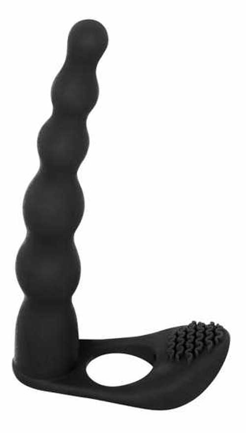 Wibrujący pierścień na penisa , połączony z dildo, umożliwiający podwójną penetrację. Wibrujący pierścień erekcyjny wykonany jest z bardzo elastycznego silikonu, dzięki czemu z łatwością dopasowuje się do każdego rozmiaru penisa, a erekcja będzie dłuższa i silniejsza. Skorzystaj także z funkcji wibracji, dzięki której sex nabiera nowego wymiaru. Specjalna silikonowa wypustka będzie stymulować łechtaczkę i dodatkowo wibrować. Pamiętaj, by podczas użytkowania wybierać jedynie lubrykanty na bazie wody, gdyż inne mogą doprowadzić do uszkodzenia powłoki zabawki. Do czyszczenia najlepiej używać wody i delikatnego mydła lub specjalnych środków do zabawek typu Toy Cleaner Kolor: czarny Materiał: silikon Wymiary: