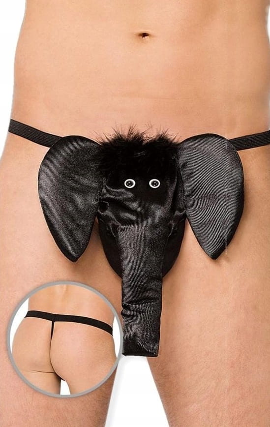 ZABAWNE CZARNE STRINGI MĘSKIE SŁONIK ROZMIAR S/L