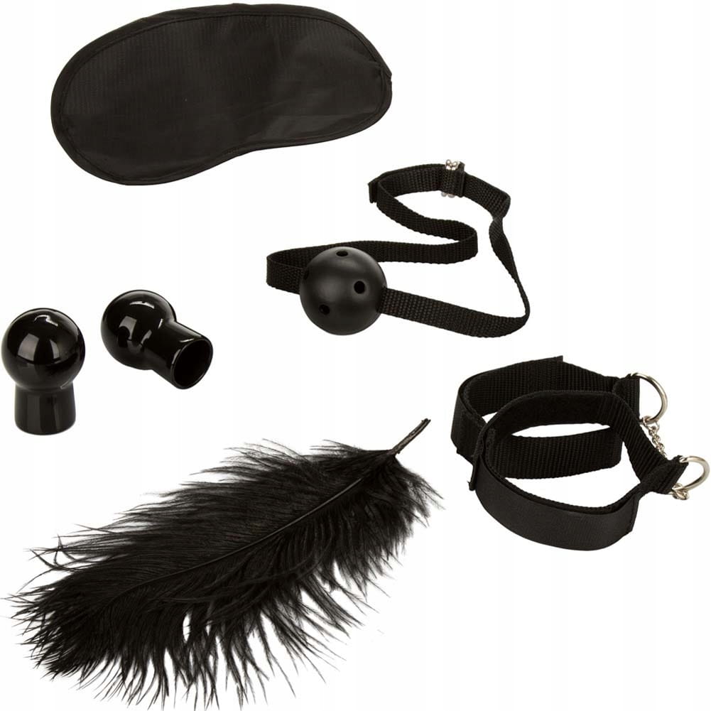 Zestaw jest w kolorze zmysłowej i egzotycznej czerni i zawiera doskonały wybór uniwersalnych akcesoriów BDSM.