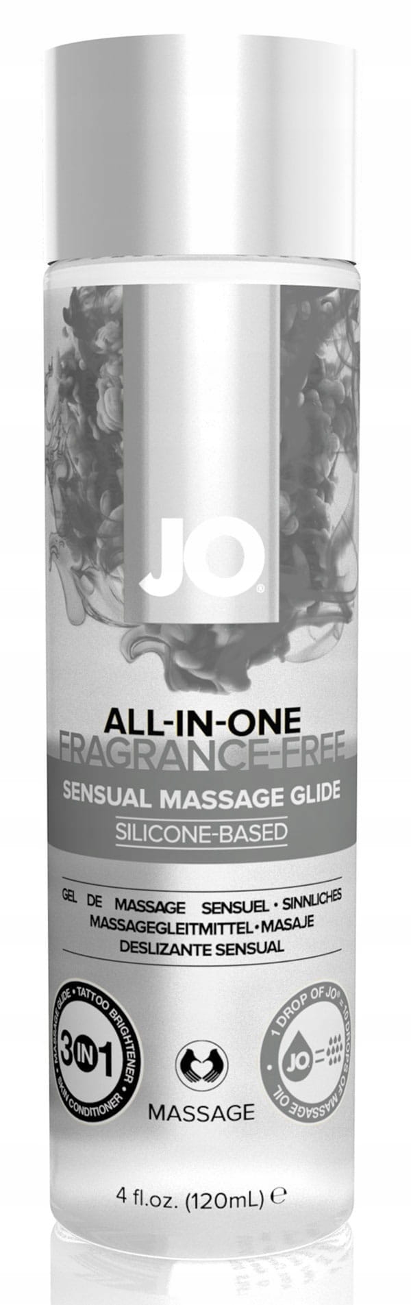 ŻEL DO MASAŻU SYSTEM JO ALL-IN-ONE UNSCENTED 120 ML System JO all-in-one unscented to bezzapachowy żel do masażu, który powstał na bazie silikonu. Jedna niewielka kropla żelu jest równa 10 kroplom tradycyjnego olejku do masażu! Jego jedwabista konsystencja dodatkowo zwiększa doznania płynące z masażu. Dzięki wodoodporności kosmetyku masaż można wykonać również pod prysznicem czy w trakcie relaksującej kąpieli. Co ciekawe, żelu System JO® all-in-one unscented można używać także jako odżywki do skóry oraz rozświetlacza do tatuażu. Kosmetyk nie zawiera parabenów i gliceryny. Nie wywołuje reakcji alergicznych ani podrażnień skóry. Nie należy stosować żelu do masażu z silikonowymi zabawkami erotycznymi oraz lateksowymi prezerwatywami, ponieważ może uszkodzić ich powierzchnię. Cechy:
