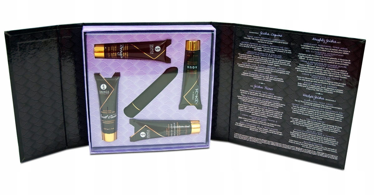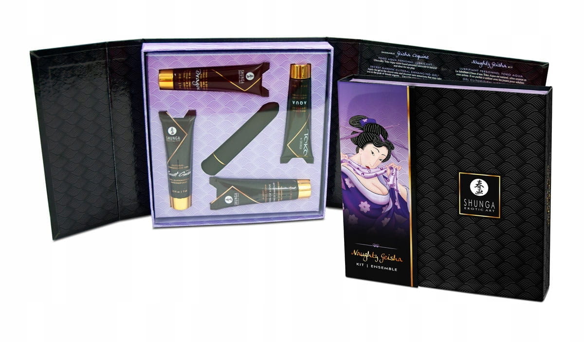 ZESTAW EROTYCZNY SHUNGA NAUGHTY GEISHA KIT Poznaj swoją Niegrzeczną Stronę. Ta kolekcja miniaturowych produktów pomoże Ci odkryć i przełamać wszelkie tabu. Nic nie przewyższa pragnienia, odkrywania pożądania przez siebie lub z partnerem. Zestaw zawiera: